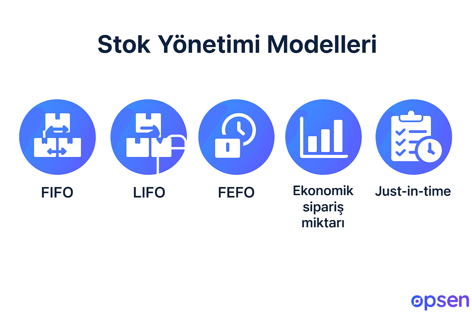 İlk giren ilk çıkan yöntemi olan FIFO, depoya ilk giren ürünün ilk çıkması anlamına gelir. Raf ömrü olan ürünlerde doğru eksilme olması amacıyla tercih edilir. Böylece SKT geçmiş ya da az kalmış ürün satışının da önüne geçilmiş olur. LIFO ise son giren ürünün ilk çıkması yöntemidir ve raf ömrü, bozulma gibi durumların olmadığı standart ürünlerde geçerlidir. Özellikle yoğun hareket olan depolarda tercih edilir. Bu yöntem sayesinde güncel satın alma maliyeti de satış maliyetine yansır. FEFO ise son kullanma tarihi en yakın olanın ilk olarak çıkmasıdır. Bu da SKT sorunları ve bozulmaları önleyerek depo hatasını en aza indirir.